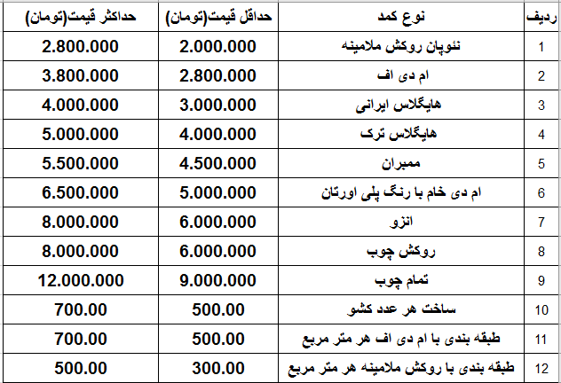 حدود قیمتها آشنا شوید، در جدول زیر این