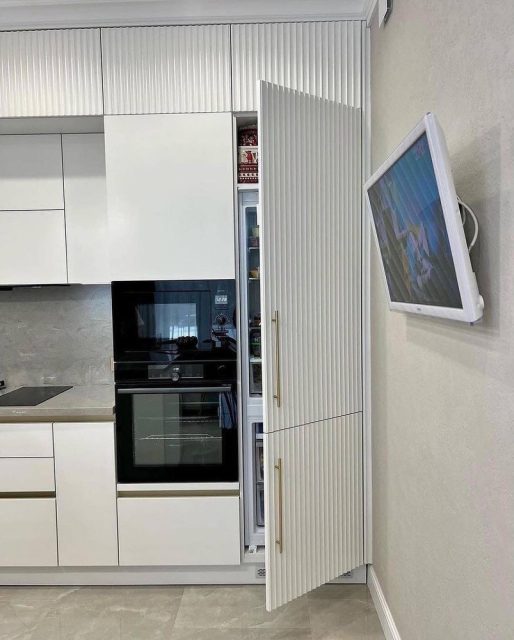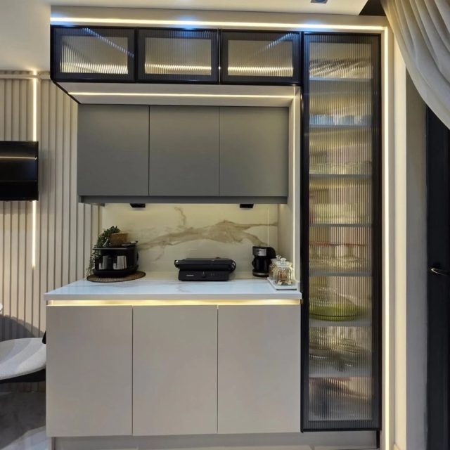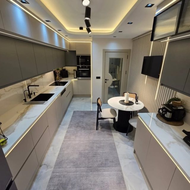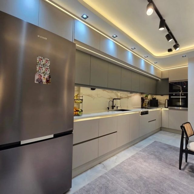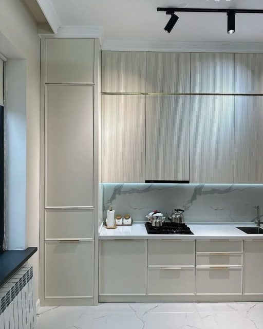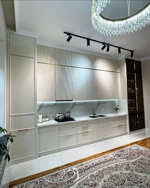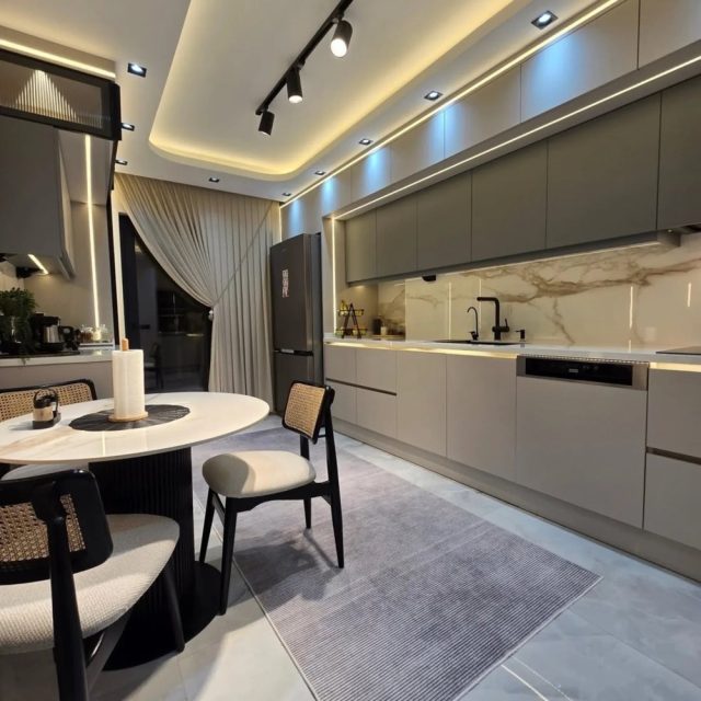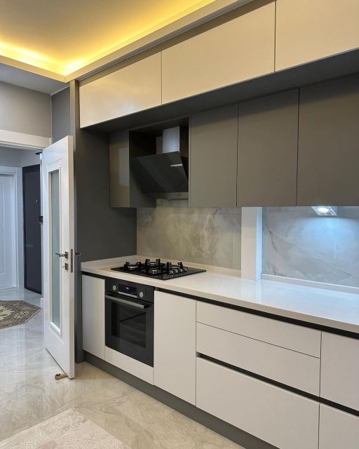 اگر شما معمولاً یک فضای شلوغ و سامان نیافته ای دارید و دوست دارید همه چیز یکپارچه و منظم به نظر برسد، صفحه کابینت با رنگ های طوسی و خاکستری، برای سامان دهی فضای شلوغ، یک انتخاب بسیار عالی است.