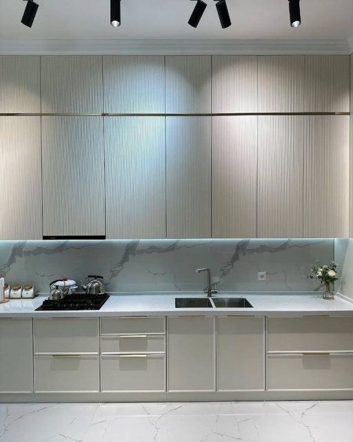 1.صفحه کابینت سفید با رگه های رنگی ملایم