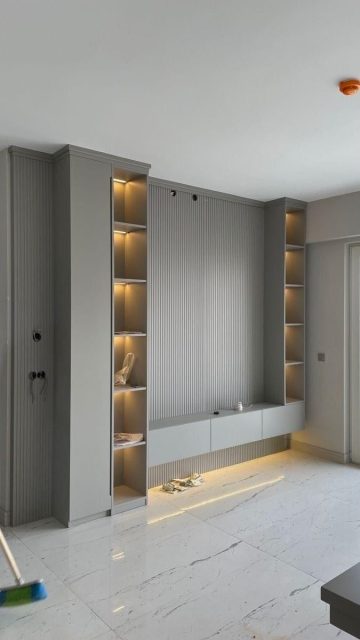 اگر متراژ خانه یا دفتر کارتان کوچک است، بهتر است از کمد دیواری هایگلاس استفاده کنید؛ مثل عکس بالا انعکاس فضای خانه یا دفتر کارتان داخل سطح صیقلی این کمد دیواری باعث میشود فضا بُعد پیدا کند و دلبازتر به نظر برسد.
